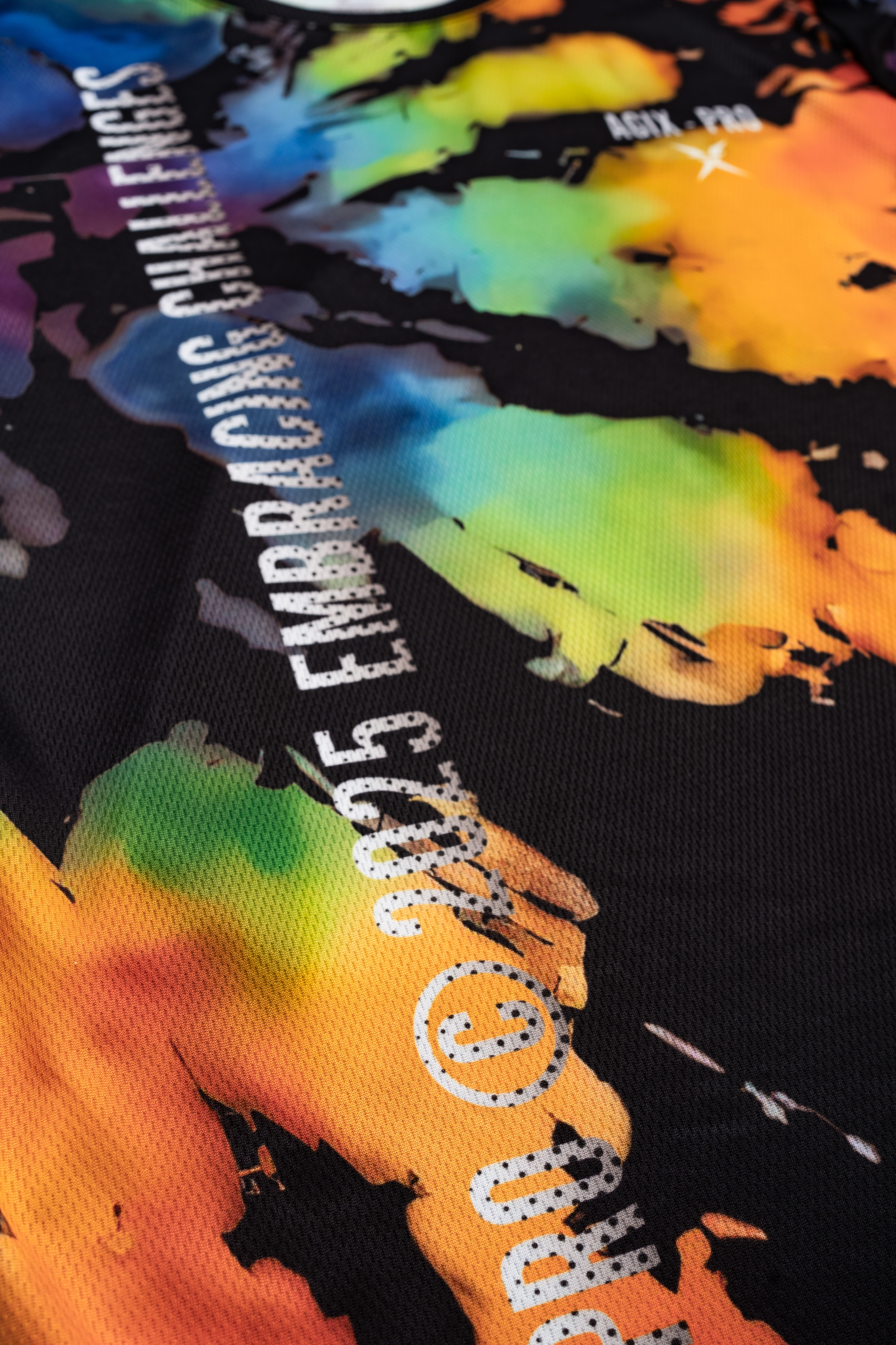 CHAOS SPLASH là tuyên ngôn của những tâm hồn nổi loạn, tự do và không bị giới hạn trong bất kỳ khuôn mẫu nào. Thiết kế tie-dye hiện đại với mảng màu đa sắc mạnh mẽ: xanh lục, cam cháy, đỏ đô, vàng hoàng hôn – tất cả hòa quyện và bùng nổ trên nền đen sâu thẳm như một vụ nổ năng lượng.