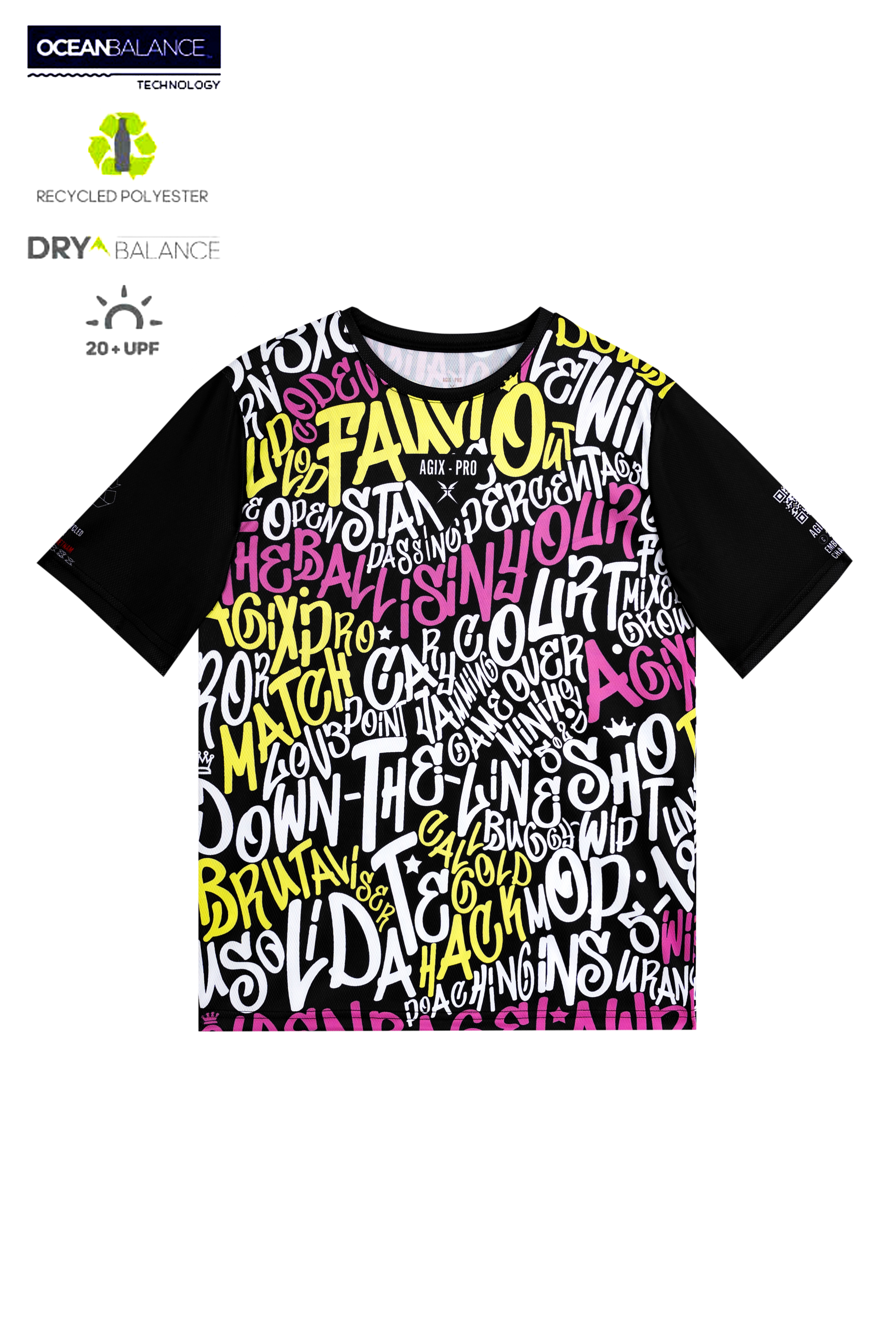 GRAFFI-BLAST là bức tường phá cách mang hơi thở đường phố, nơi phong cách graffiti rực rỡ hòa quyện cùng tinh thần thể thao hiện đại. Những dòng chữ tay bay bổng, đan xen, ngẫu hứng như chính tâm trạng thi đấu biến hóa linh hoạt của người mặc – không tuân theo lối mòn, không bị đóng khung.