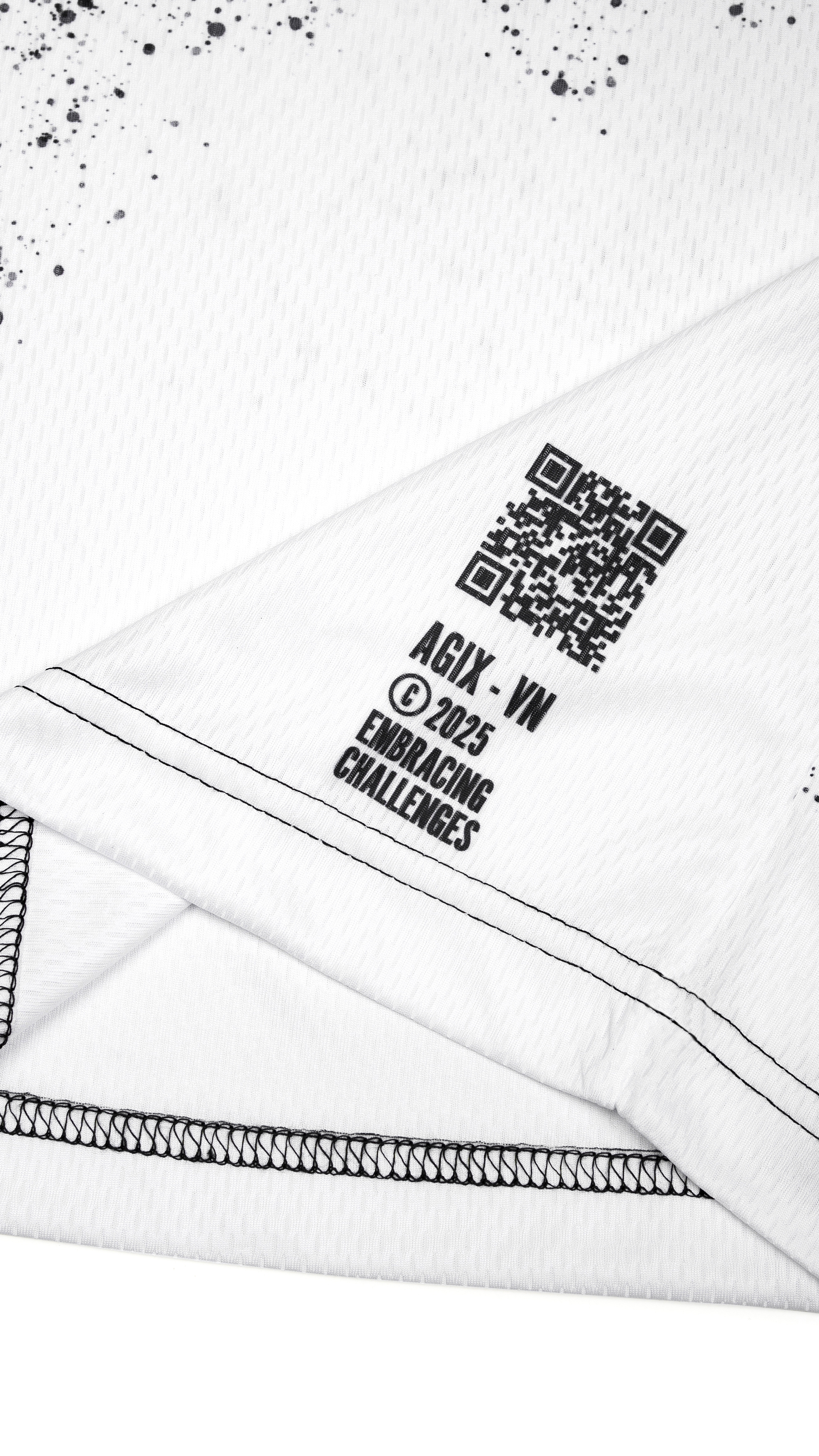 Phần quần được thiết kế theo phong cách monogram lặp toàn bộ với logo AGIX – tạo hiệu ứng thị giác mạnh, khẳng định dấu ấn thương hiệu trong từng chuyển động. Tổng thể mang chất urban streetwear nhưng vẫn giữ được tinh thần thi đấu chuyên nghiệp.