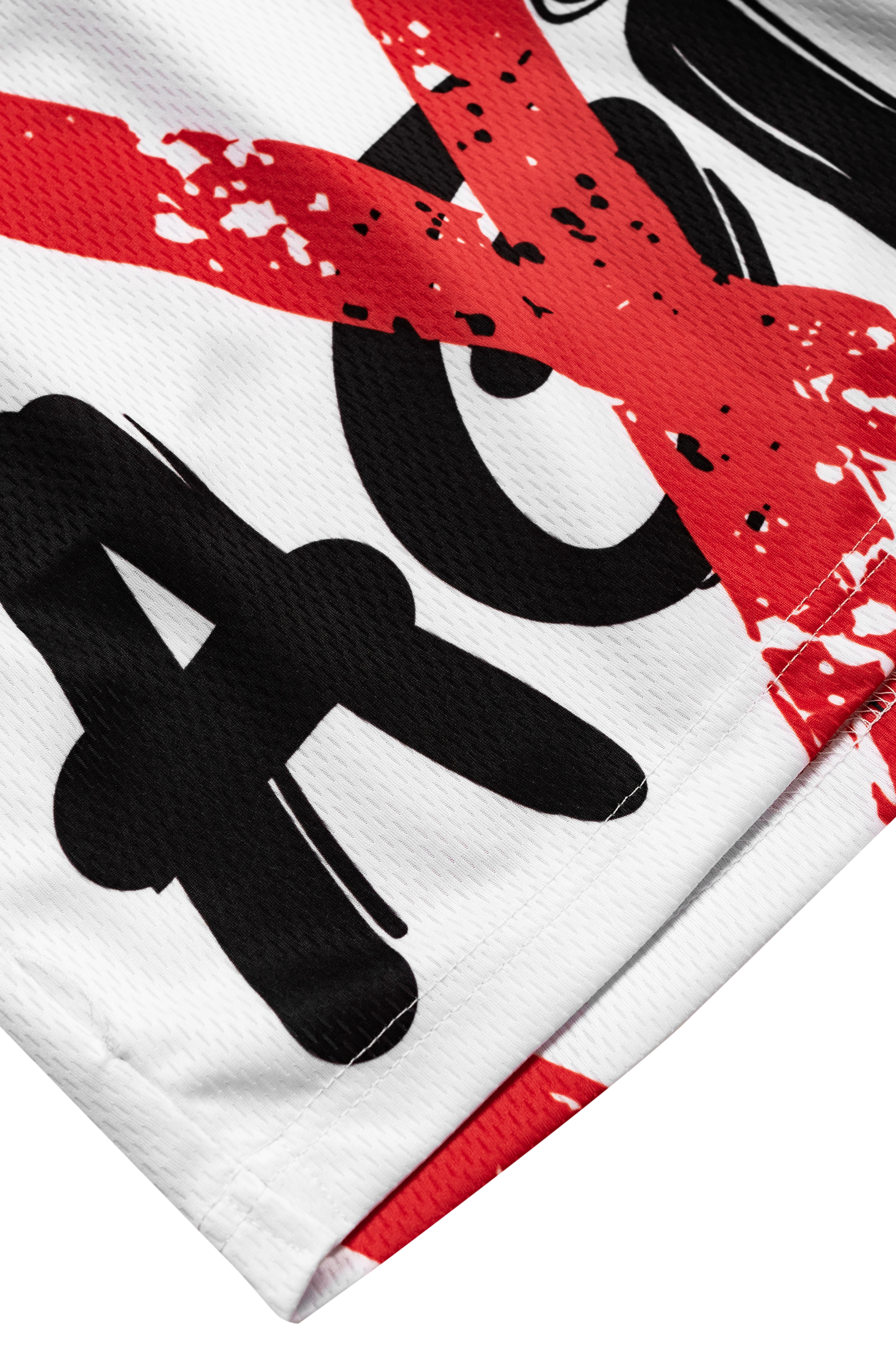 Thiết kế phá cách với dấu “X” đỏ máu trải dài từ áo xuống quần – như một cú đánh mạnh vào mọi rào cản. Phông chữ graffiti ngổ ngáo cùng mảng đối lập trắng – đen đầy kịch tính tạo nên tổng thể đậm chất “street warrior”.