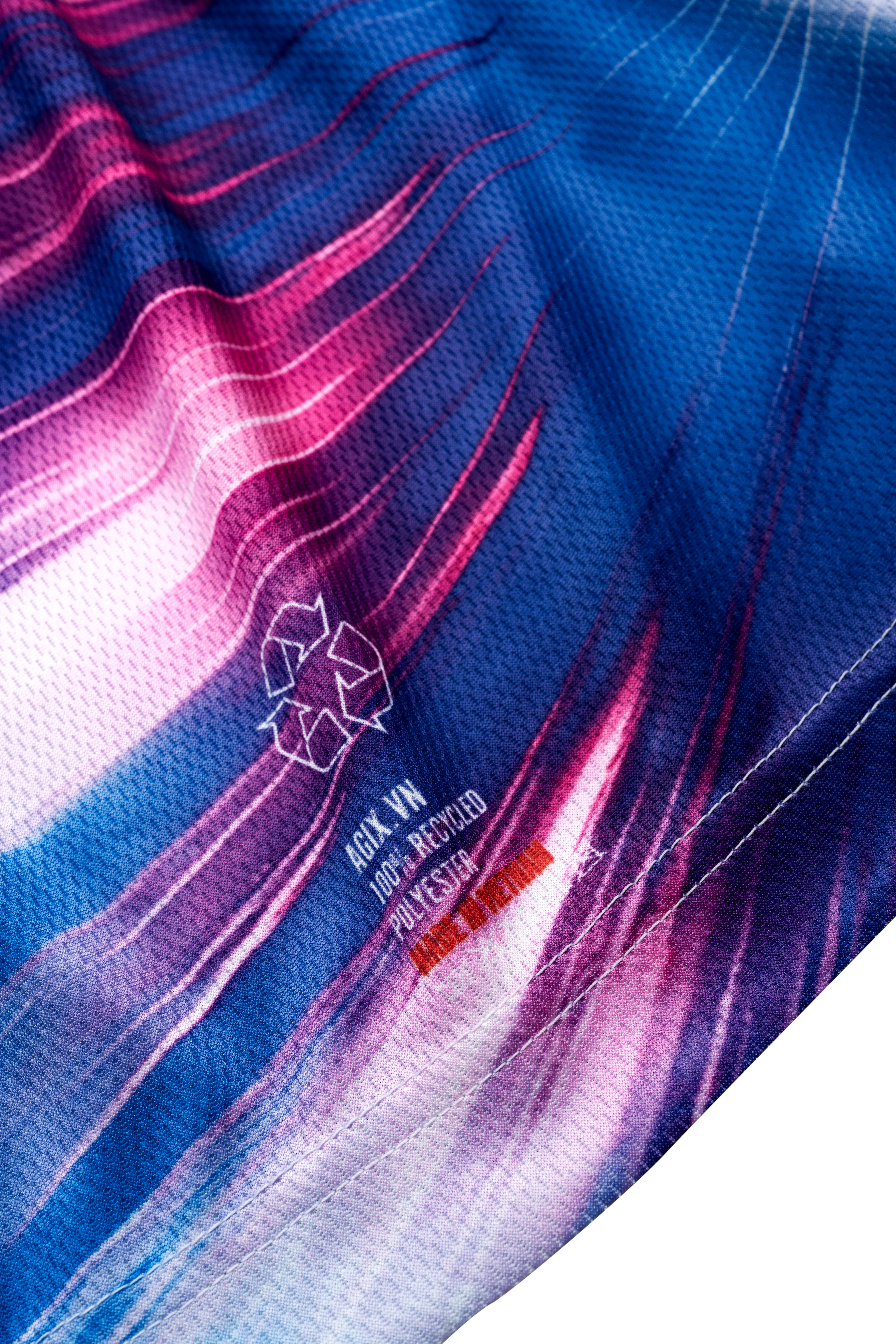 Chất liệu sử dụng polyester tái chế theo công nghệ Ocean Balance – siêu nhẹ, thoáng khí và thân thiện với môi trường.