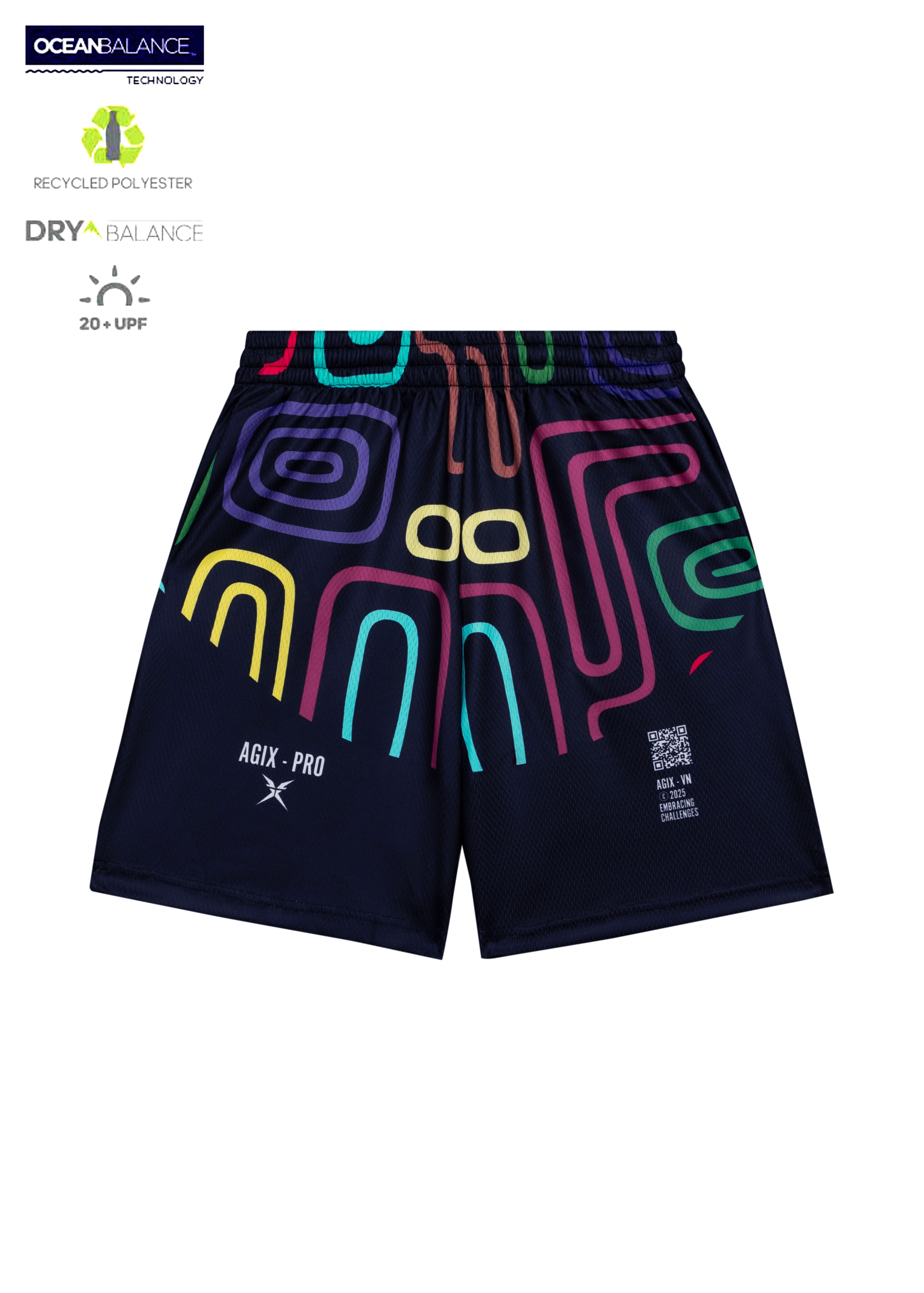 Họa tiết đa sắc neon trên nền tối mang đến sự nổi bật đầy cá tính, như những lối đi phát sáng trong bóng đêm, khẳng định phong cách khác biệt trên sân tập lẫn ngoài phố.