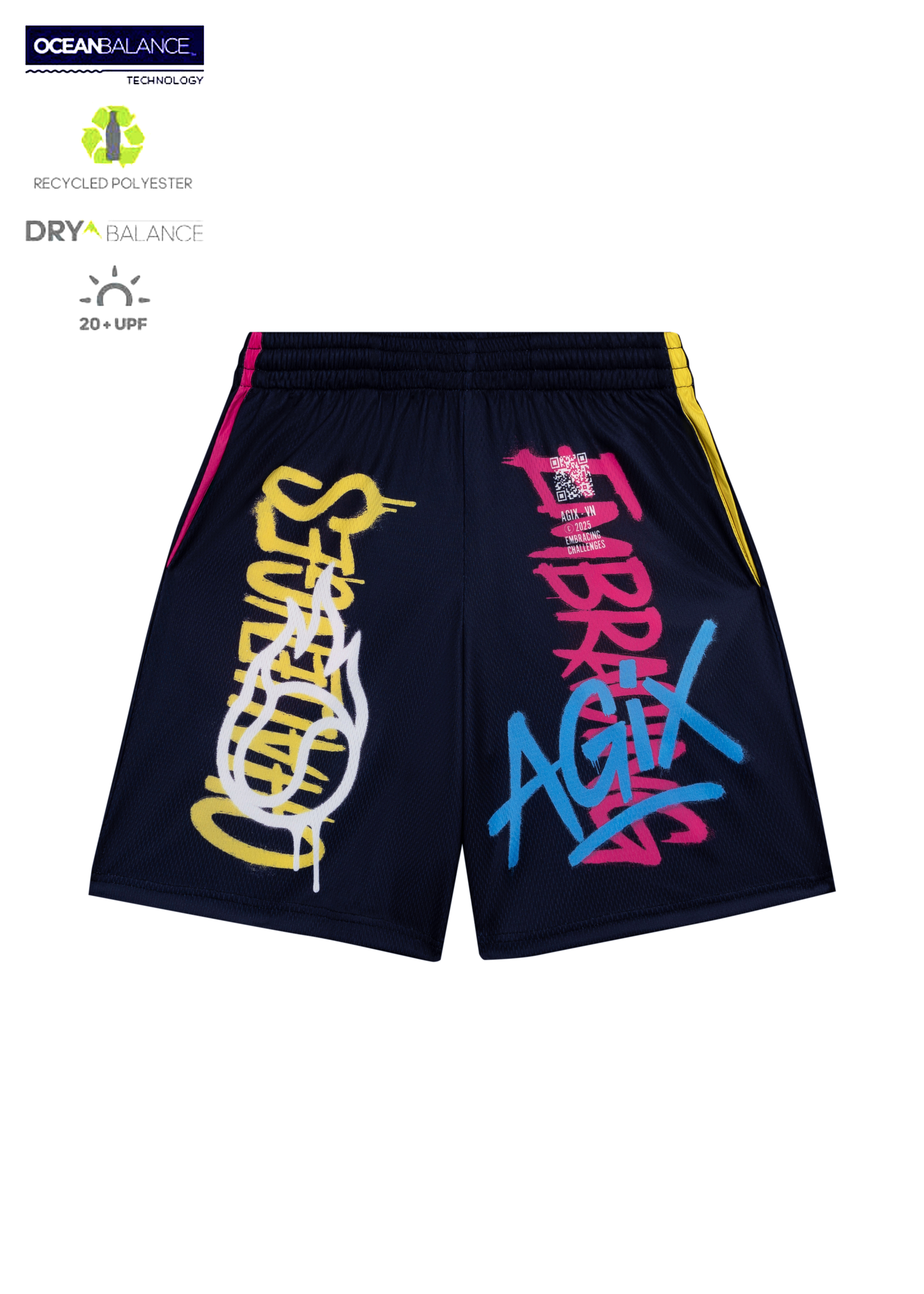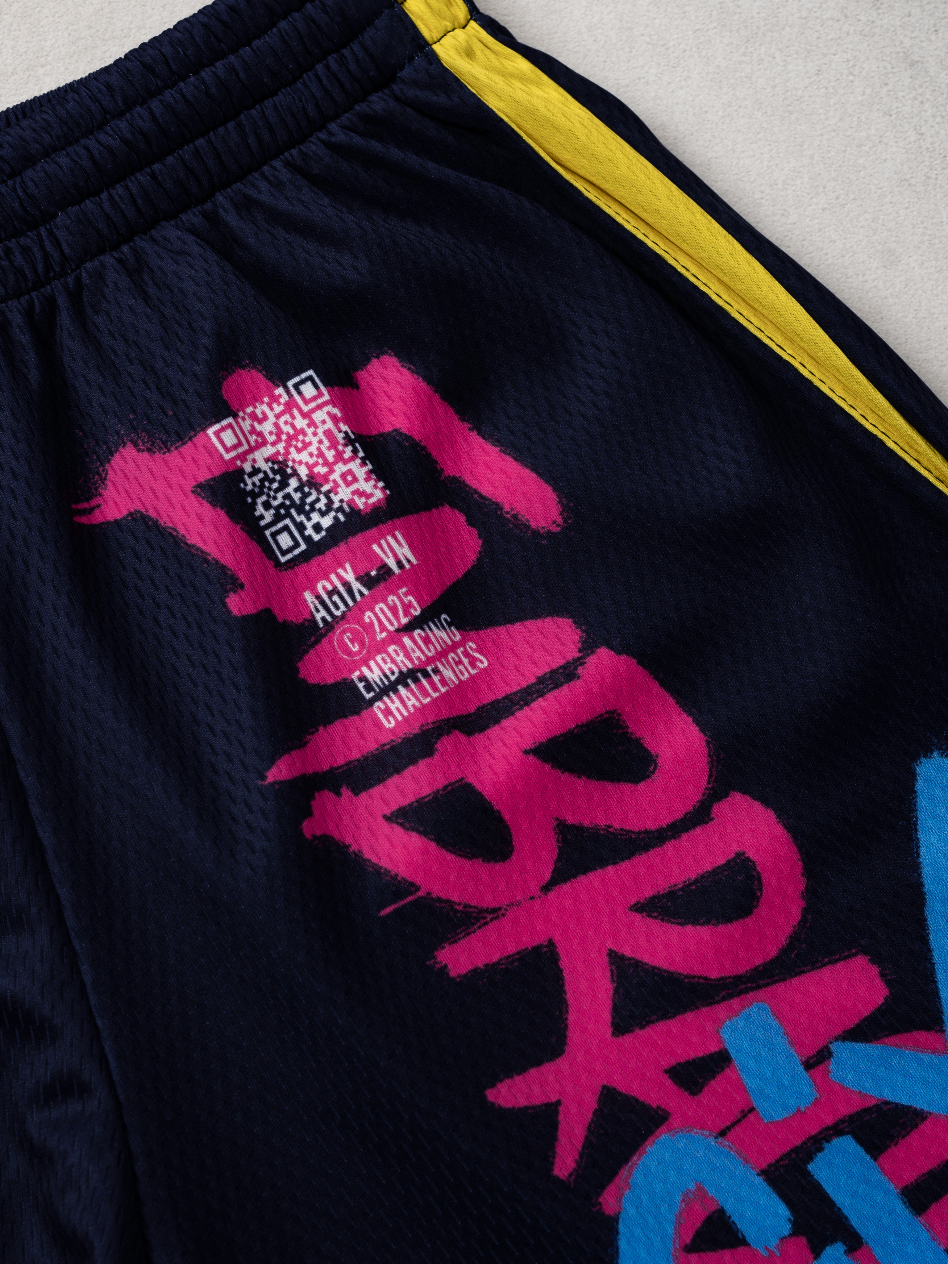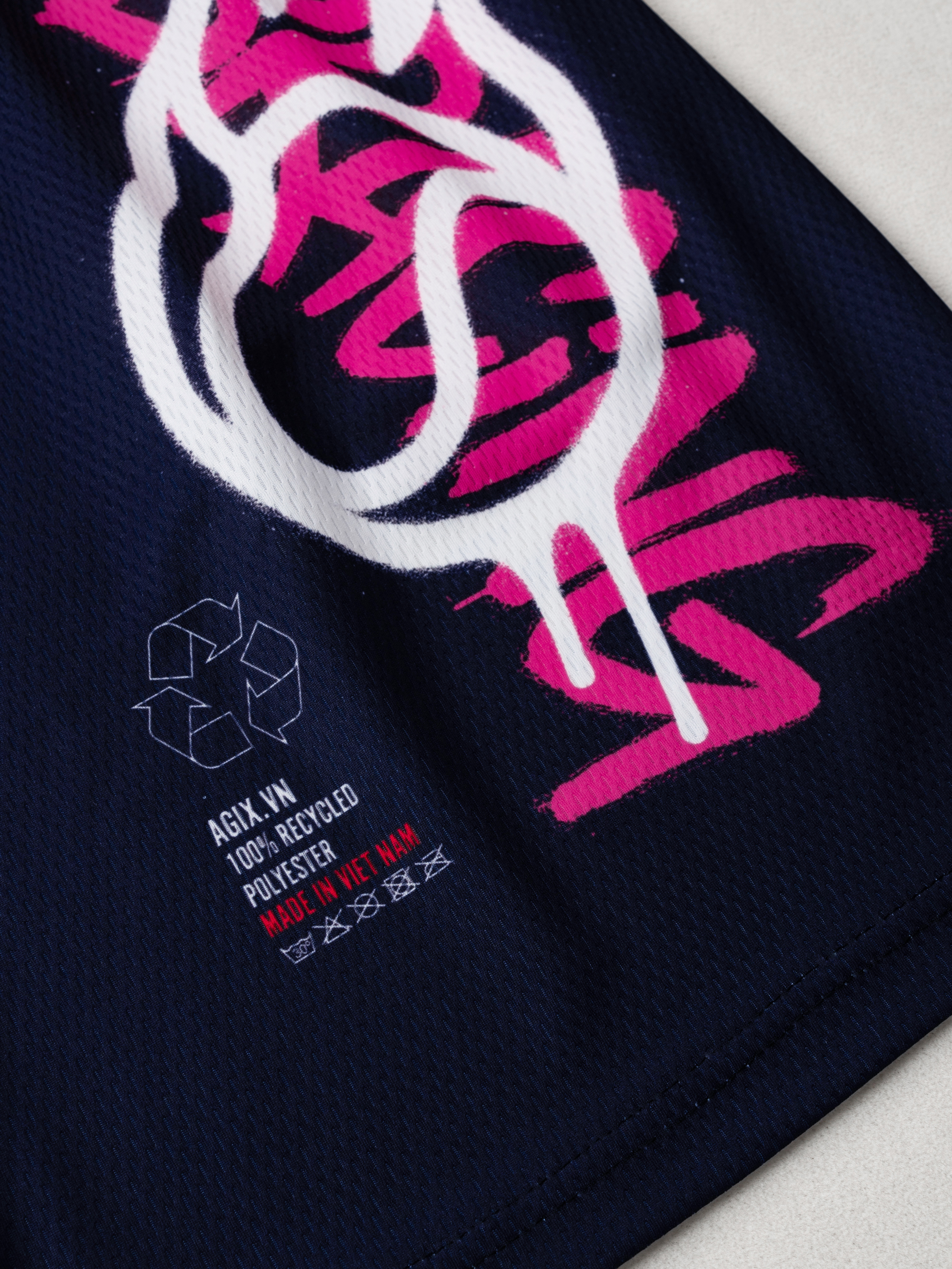 Lấy cảm hứng từ nghệ thuật graffiti phóng khoáng, bộ đồ STREET BLAZE mang đến tinh thần nổi loạn và dám khác biệt. Các dòng chữ spray-paint với hiệu ứng loang chảy, kết hợp sắc neon xanh – vàng – hồng tạo nên cảm giác bùng nổ như những mảng màu bắn tung trên bức tường phố.