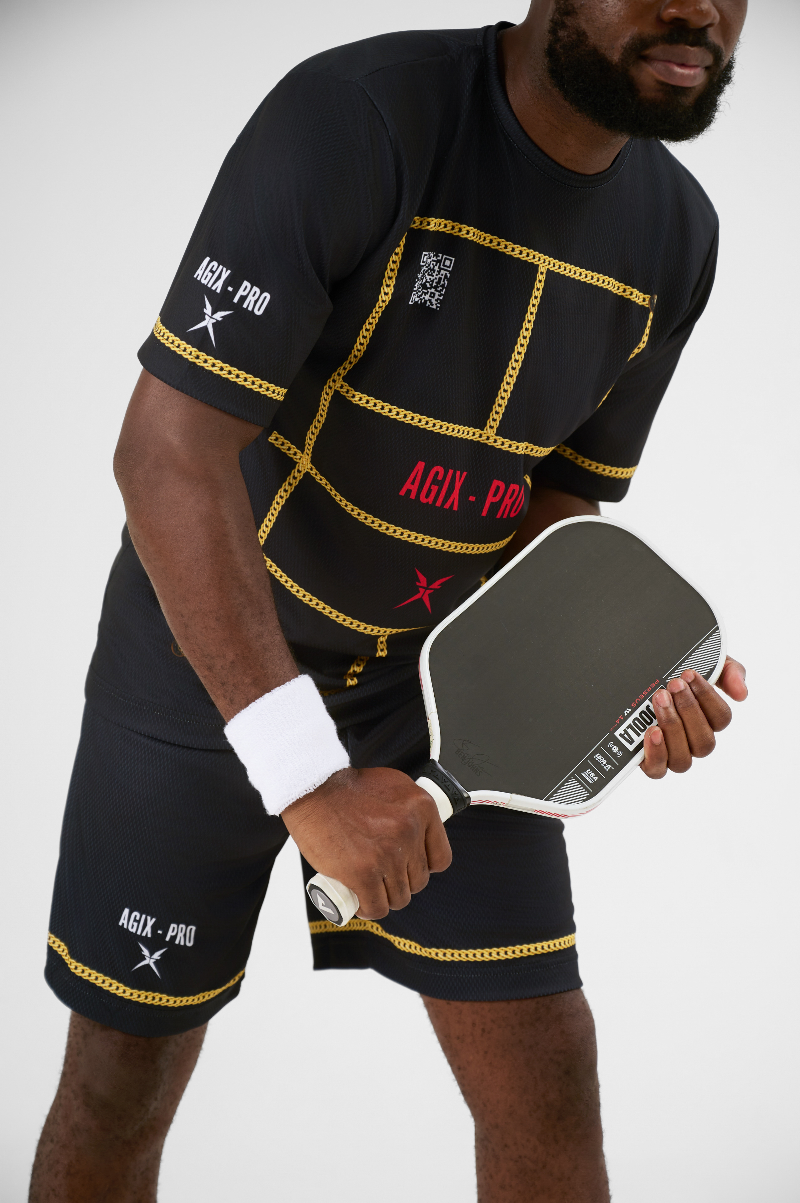 Phiên bản BLACKOUT là bản nâng cấp táo bạo của dòng ARENA GRID, dành cho những vận động viên mang khí chất lạnh lùng nhưng đầy sát thương. Tông đen huyền bí kết hợp với đường lưới vàng ánh kim nổi bật như bản đồ thi đấu được mạ vàng – từng bước di chuyển đều mang chiến thuật và đẳng cấp riêng.