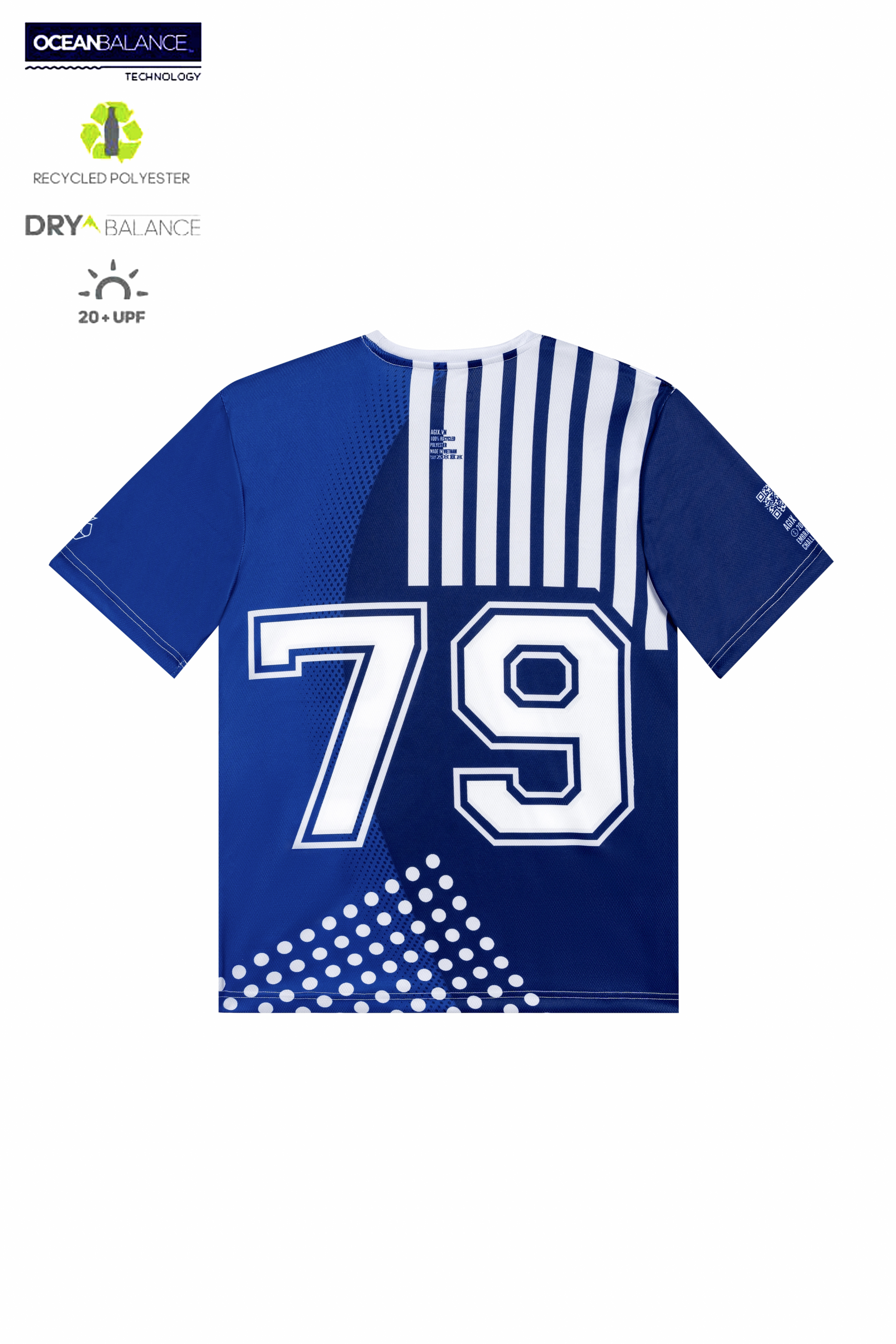 Phom thể thao chuẩn thi đấu, ứng dụng chất liệu polyester tái chế công nghệ Ocean Balance kết hợp Quick Dry Cool Max, cho hiệu quả thấm hút – khô nhanh – chống tia UV UPF 20+, thân thiện với môi trường và tối ưu cho các hoạt động vận động ngoài trời.