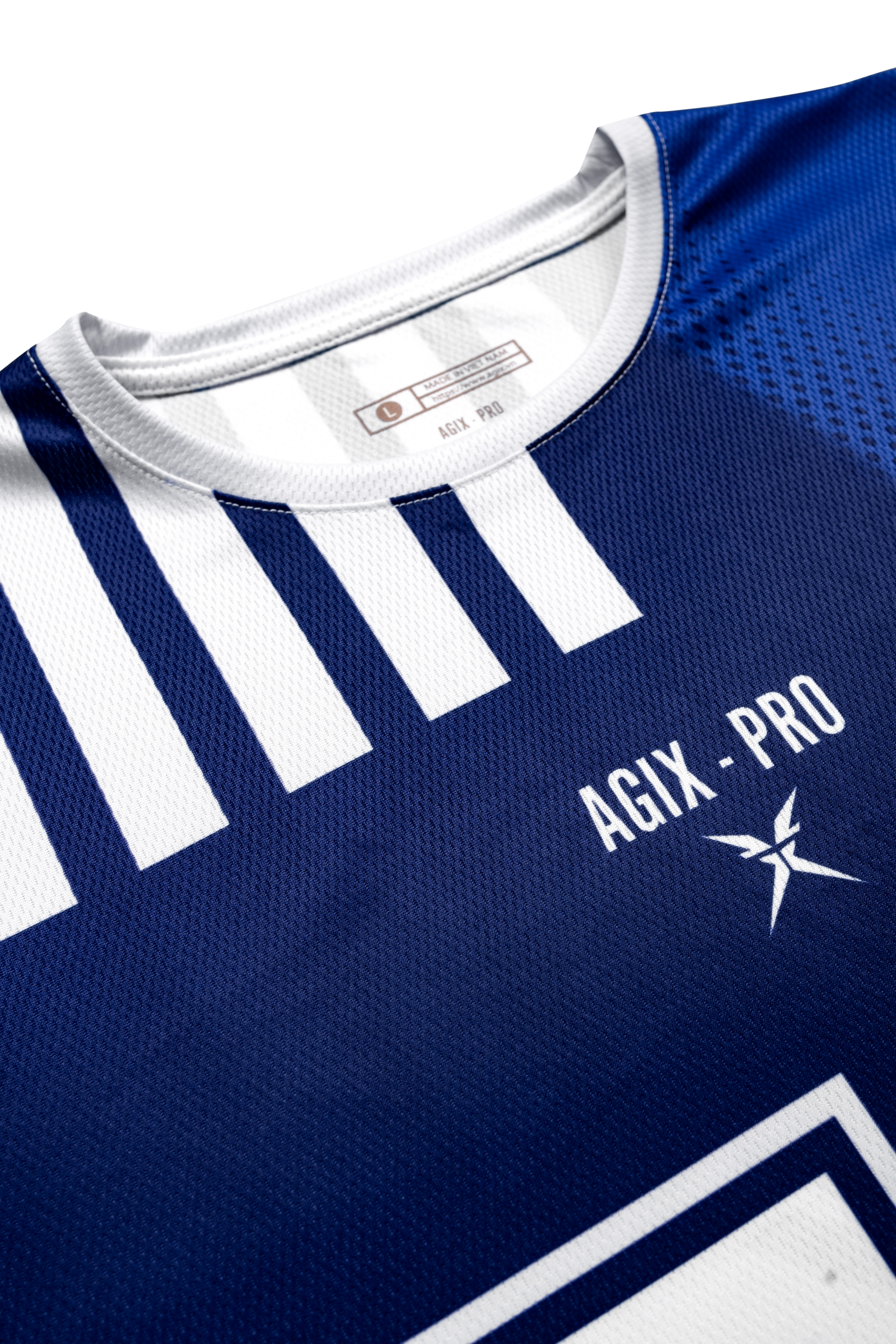 Phối hợp sọc dọc, chấm tròn và hiệu ứng pixel trên nền xanh navy tạo nên tổng thể chuyển động, vừa logic như hệ thống dữ liệu, vừa sôi nổi như nhịp đấu liên hoàn. Màu sắc tương phản giúp bộ đồ nổi bật trên sân, trong phố hay trong bất kỳ cuộc chơi nào.