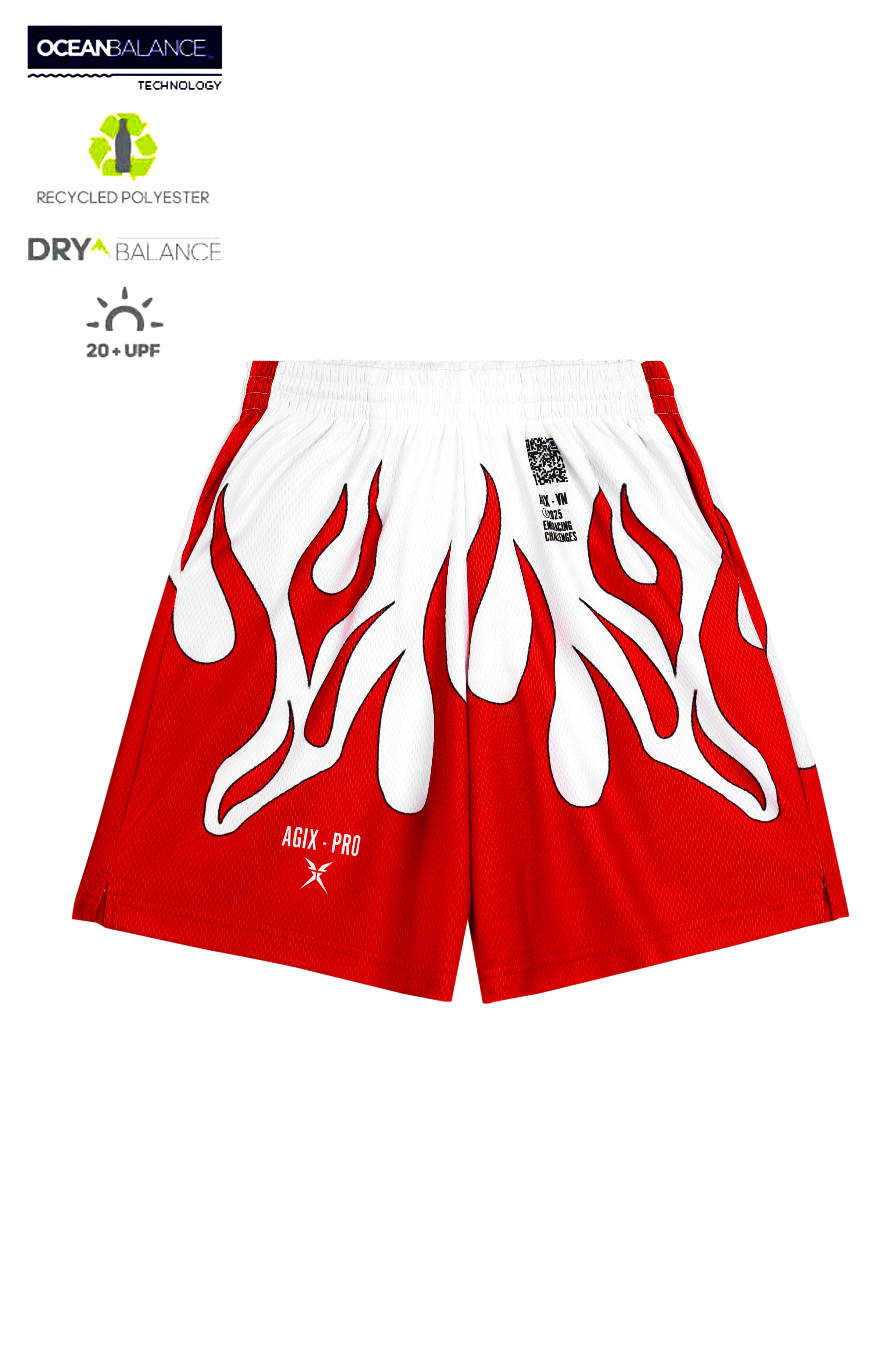 Họa tiết lửa đỏ bùng cháy chạy dọc tay áo và quần short như dấu hiệu của sức mạnh nội lực đang bùng phát. Sọc đỏ trước ngực cách điệu từ những đường seal phong ấn – biểu tượng cho sự kiểm soát và kỷ luật thép bên trong một ngọn lửa dữ dội.