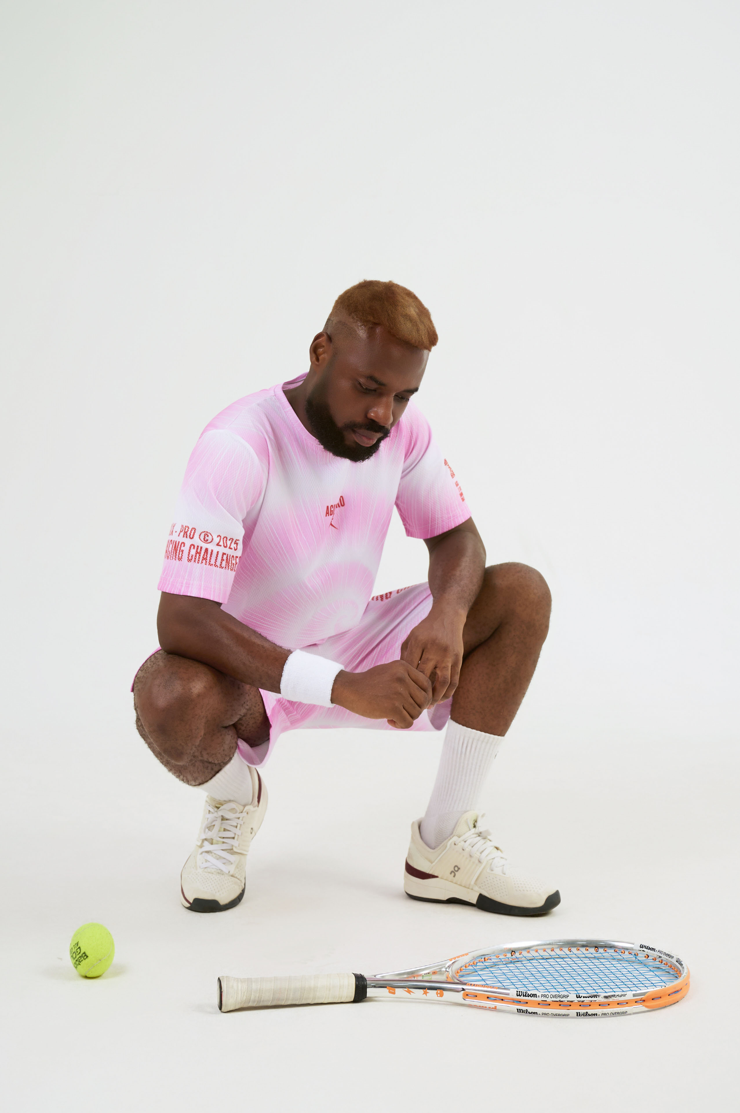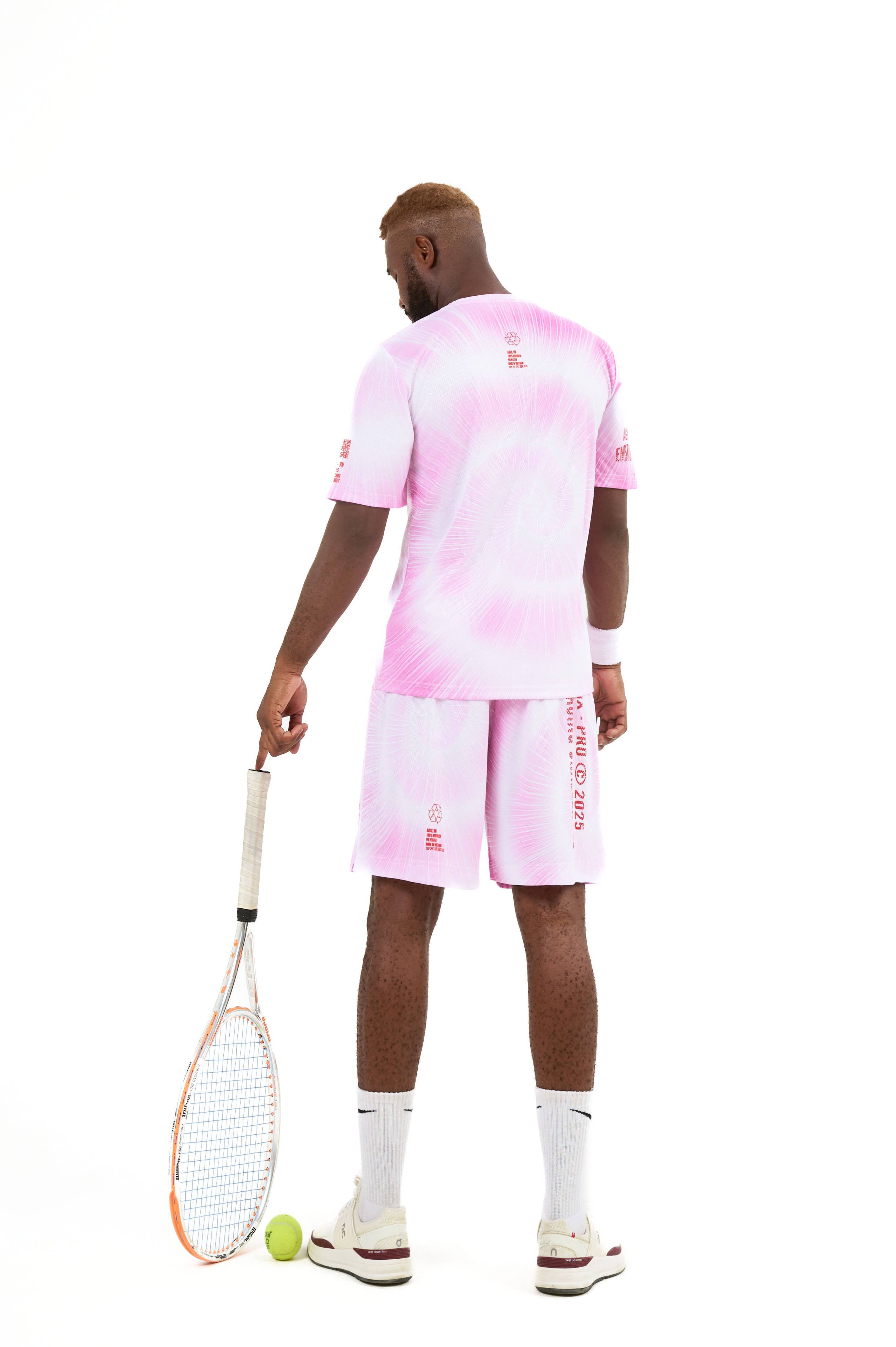 Hiệu ứng xoáy trung tâm lan tỏa mềm mại như vòng xoay của khí lực nội tâm, tạo cảm giác chuyển động và thanh lọc. Màu tím nhạt kết hợp nền trắng mang lại sự nổi bật nhẹ nhàng nhưng không kém phần cuốn hút – lý tưởng cả khi trên sân hay ngoài phố.