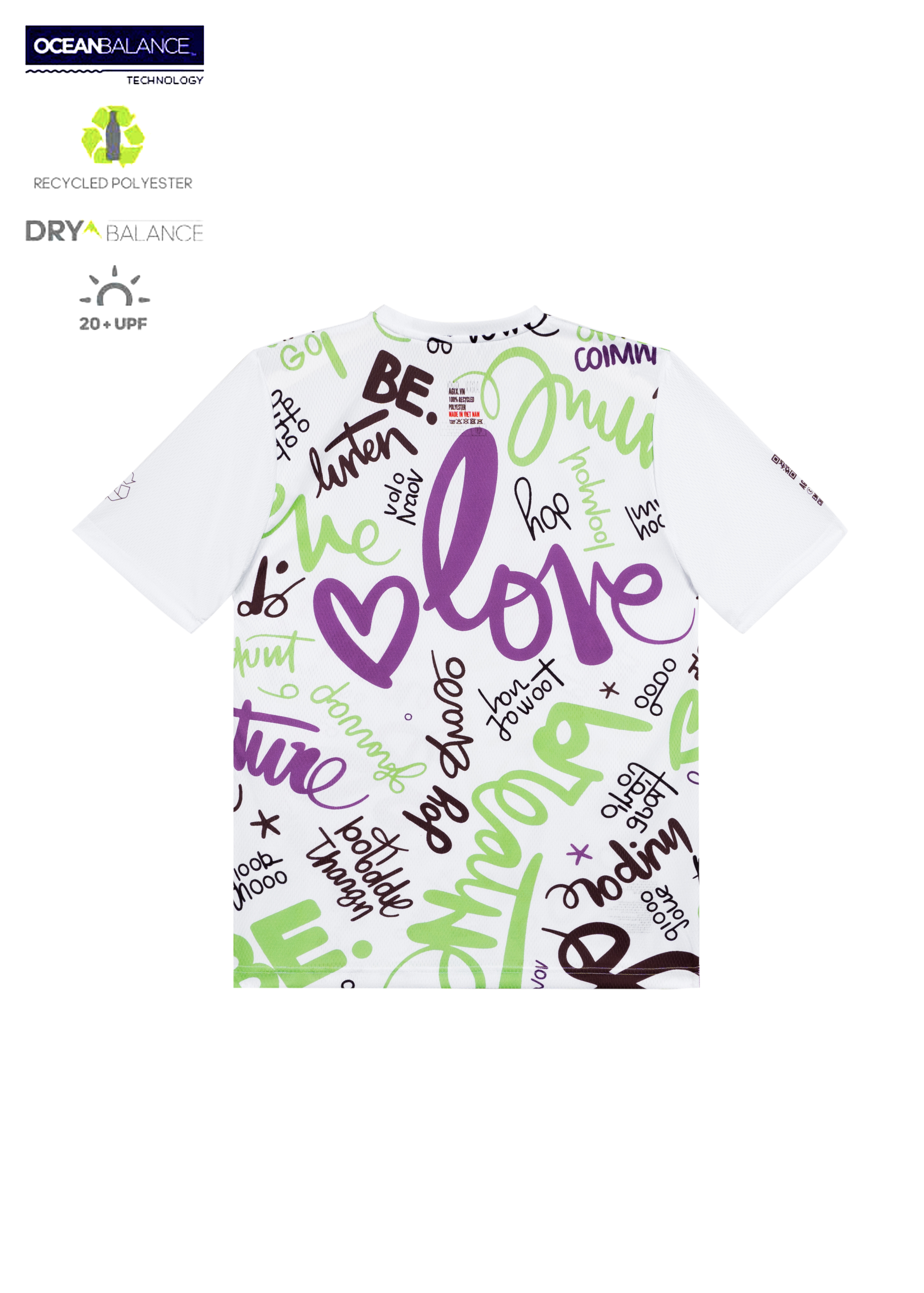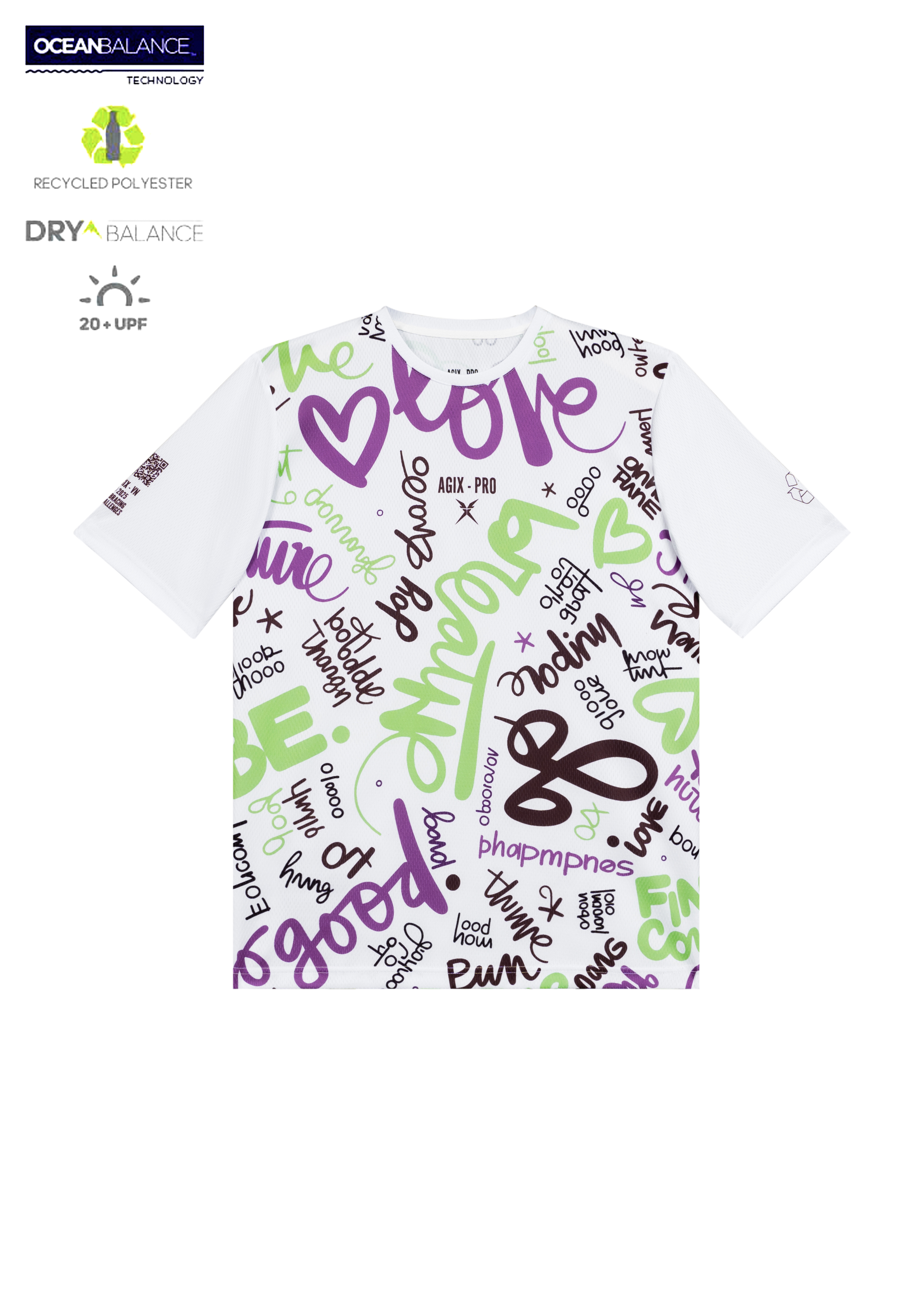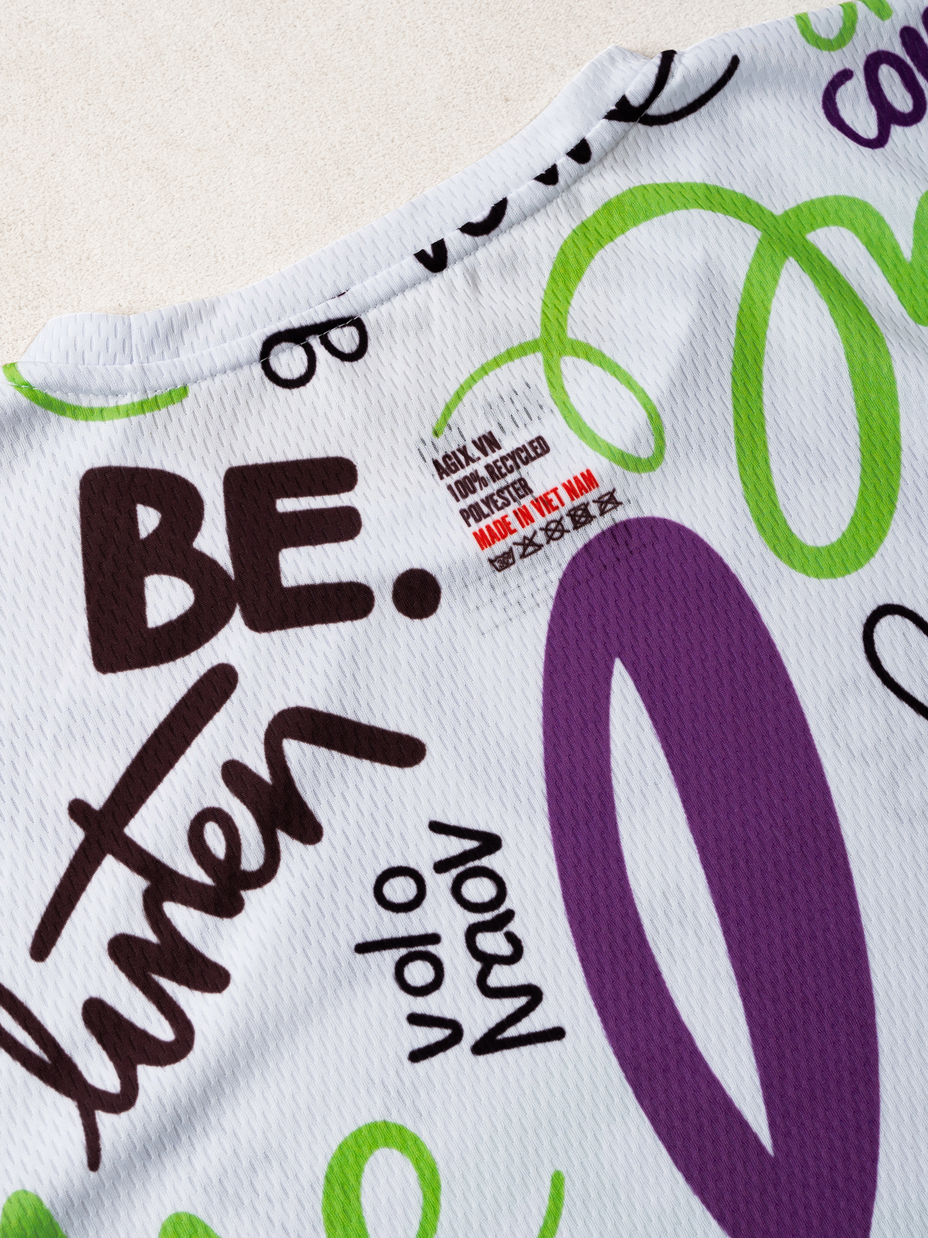 Lấy cảm hứng từ nghệ thuật graffiti và những thông điệp tích cực, bộ đồ POSITIVE VIBES biến từng dòng chữ thành nguồn cảm hứng sống động. Các từ khoá như love, good, happiness… được thể hiện bằng font chữ đa dạng, màu sắc ngẫu hứng, mang lại cảm giác phóng khoáng, trẻ trung và cực chất.