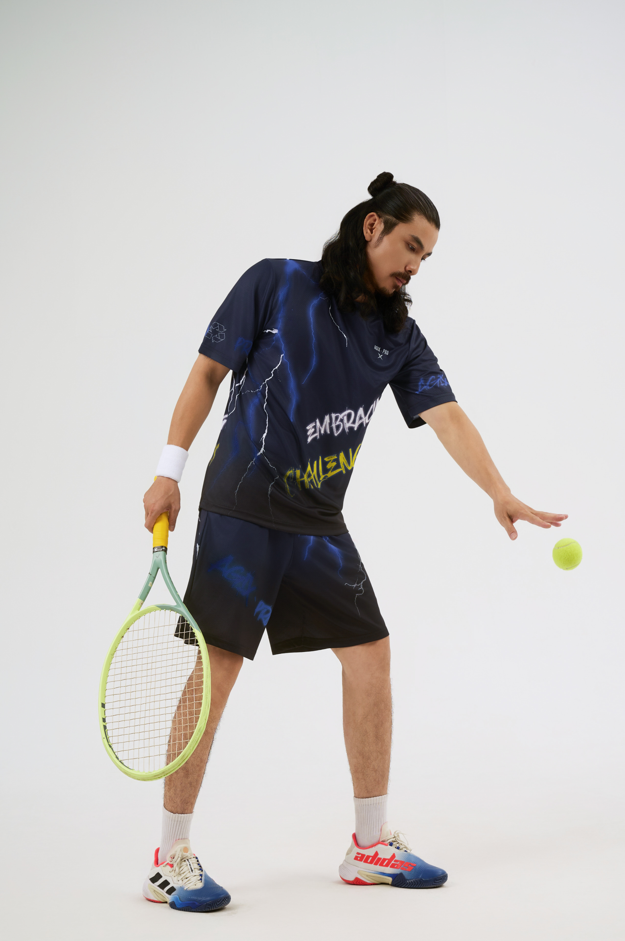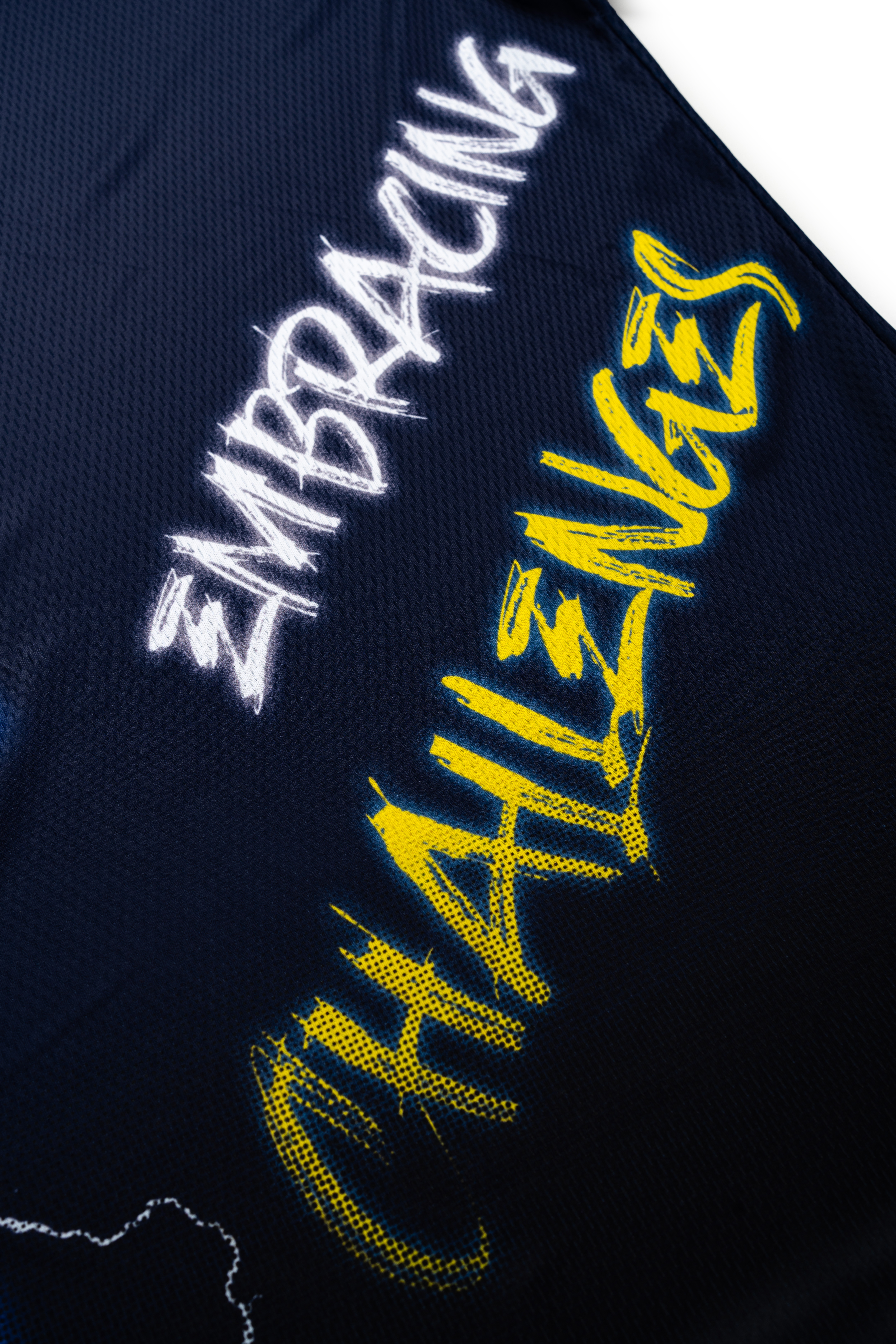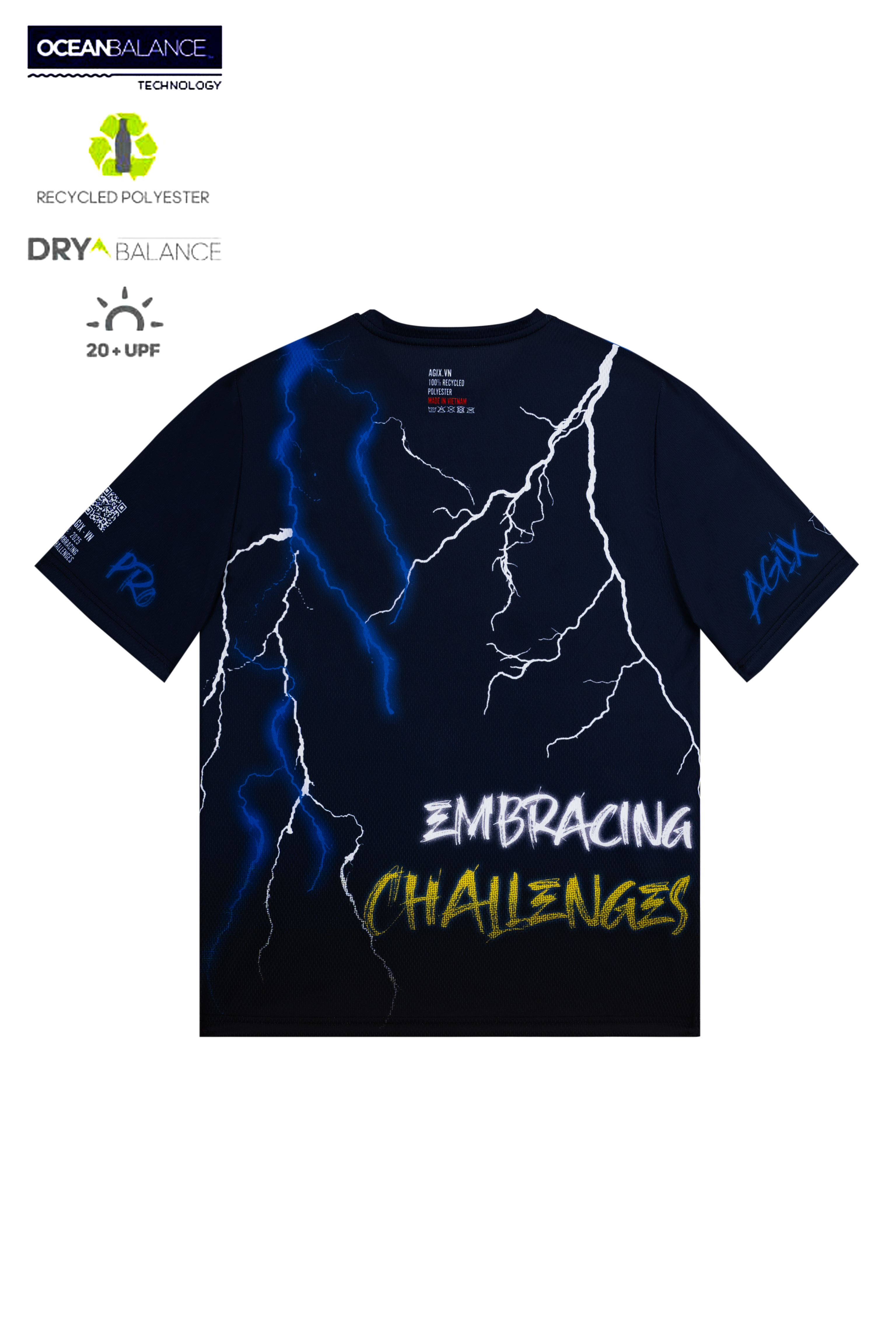 Slogan “EMBRACING CHALLENGES” được đặt lệch ngực đầy táo bạo – như một lời nhắc: tinh thần thể thao không nằm ở sự dễ dàng, mà ở cách ta đối diện những khó khăn.