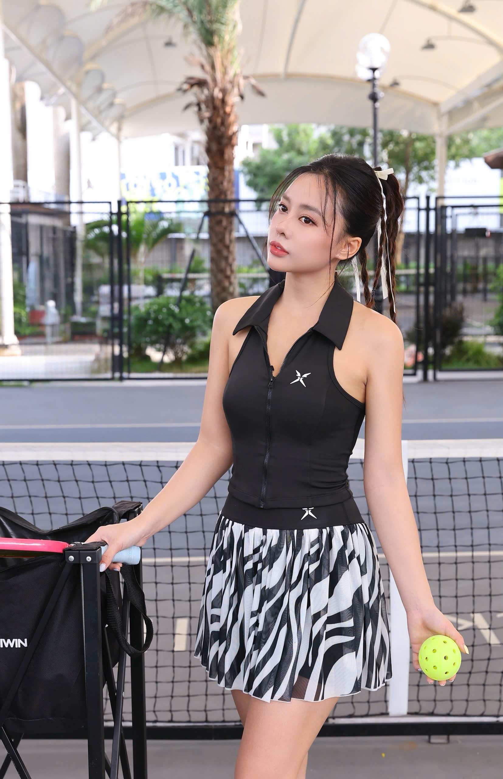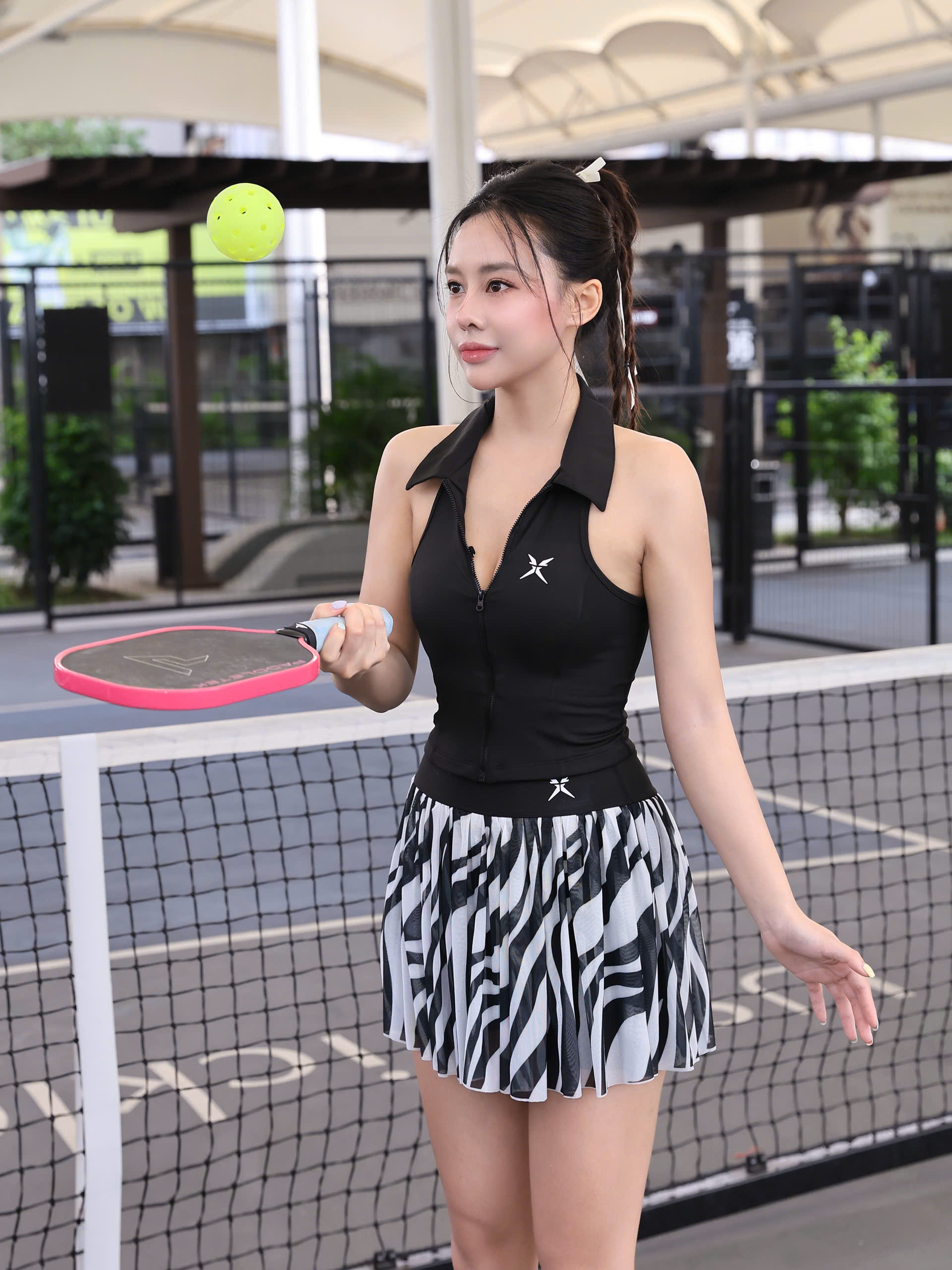 Lấy cảm hứng từ những đường vân ngựa vằn đầy hoang dã và ấn tượng, bộ đồ ZEBRA EDGE mang đến sự nổi bật không thể nhầm lẫn. Áo croptop cổ vest đen tối giản, ôm dáng gọn gàng, kết hợp chân váy xòe họa tiết zebra đen – trắng, tạo hiệu ứng thị giác mạnh mẽ và phong cách đầy tự tin.